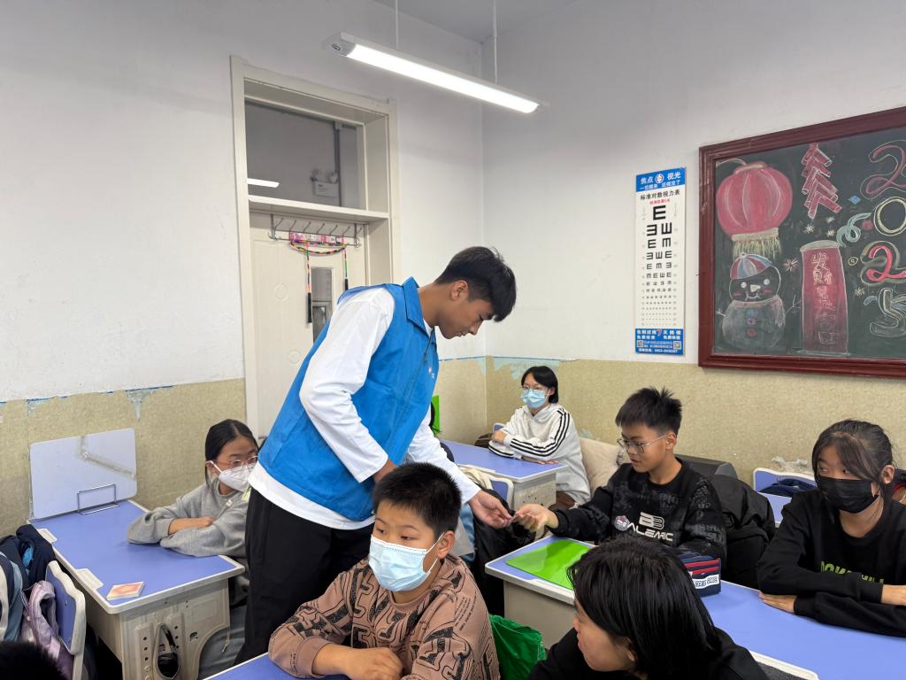 活动尾声,宣讲团成员给小学生们贴上主题贴纸。默契互动里,科普的种子悄然扎根,灿烂的笑容洋溢在每个人脸上,共同奏响了一曲融合着求知渴望与青春活力的和谐乐章。